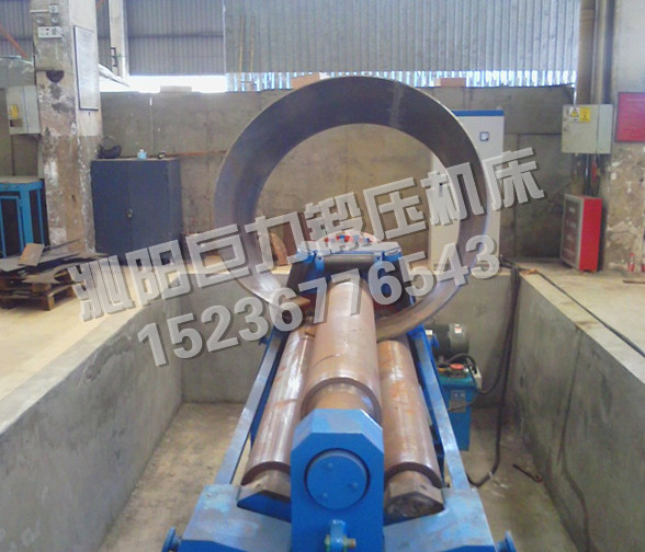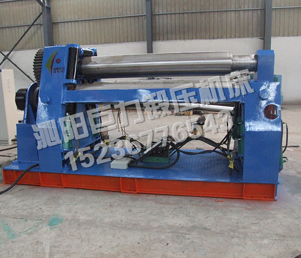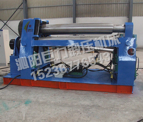 該機(jī)型的上輥固定,兩下輥呈傾斜狀做旋轉(zhuǎn)運(yùn)動(dòng),兩下輥可以同時(shí)升降,也可以單升單降,用以完成板材的端部預(yù)彎。