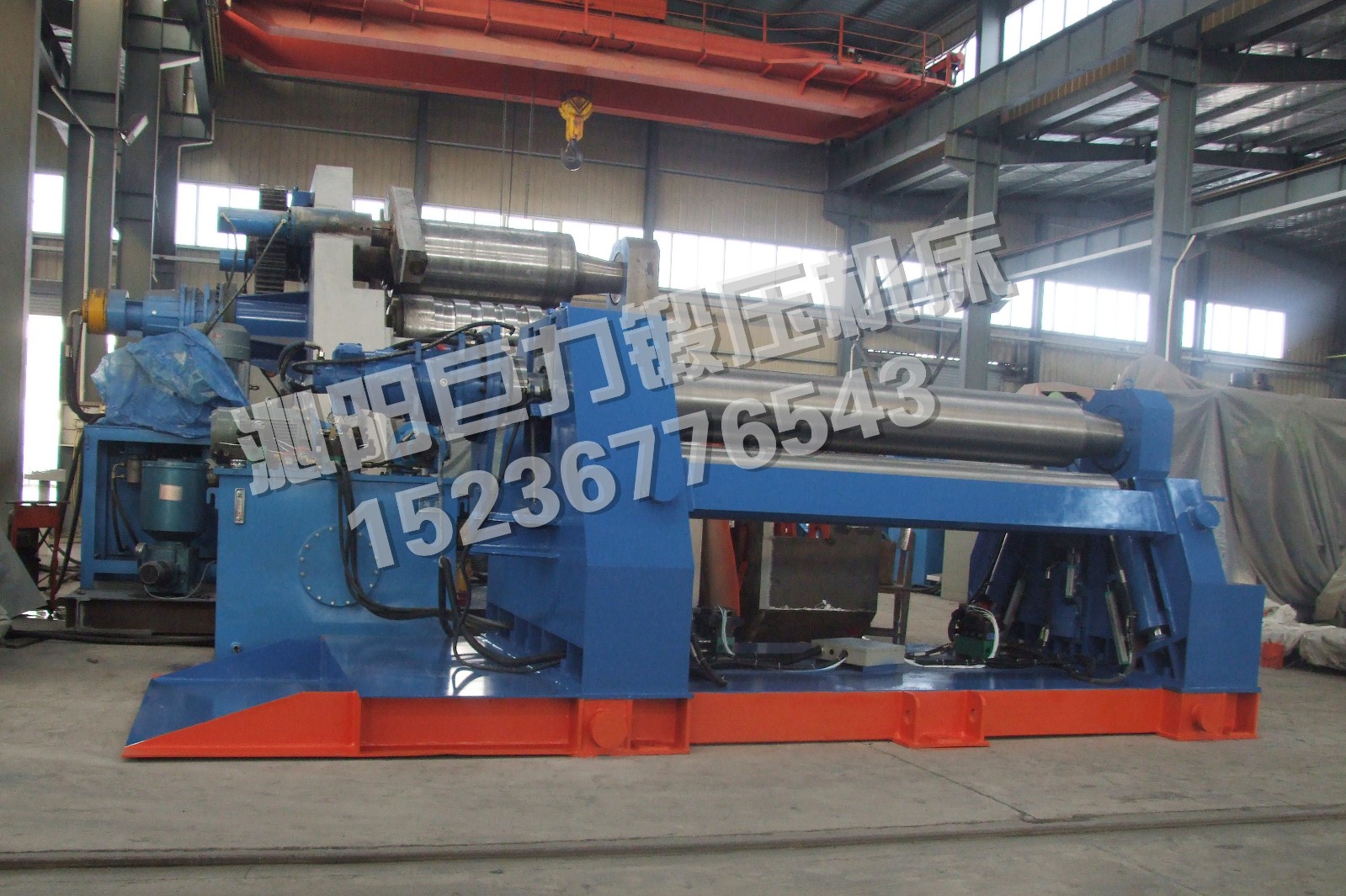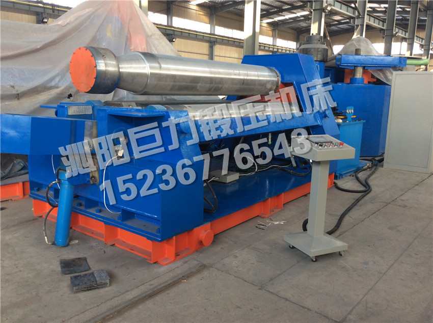 該四輥卷板機(jī)與對(duì)稱三輥卷板機(jī)比較,它可以不借助其它設(shè)備模具,直接予彎板材端部,而且剩余直邊較小;它可以不使板材調(diào)頭,而卷成工件。