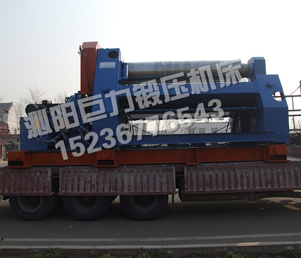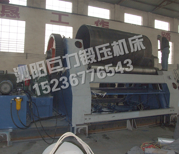 該四輥卷板機(jī)與對稱三輥卷板機(jī)比較,它可以不借助其它設(shè)備模具,直接予彎板材端部,而且剩余直邊較小;它可以不使板材調(diào)頭,而卷成工件。