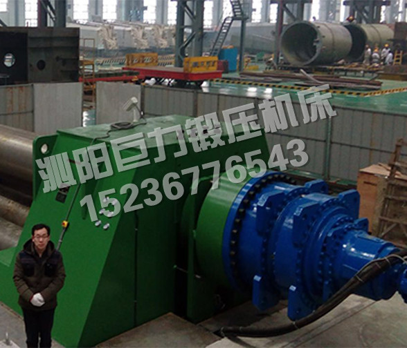 該四輥卷板機與對稱三輥卷板機比較,它可以不借助其它設備模具,直接予彎板材端部,而且剩余直邊較??;它可以不使板材調頭,而卷成工件。